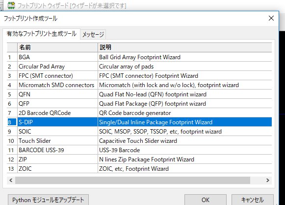 - 作成ウイザードが起動します。ここでは、12PinなSIPを書いてみます。S-DIPをクリックします。