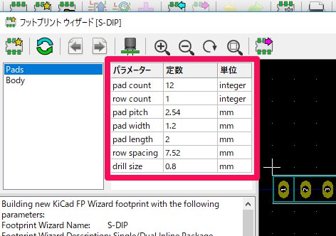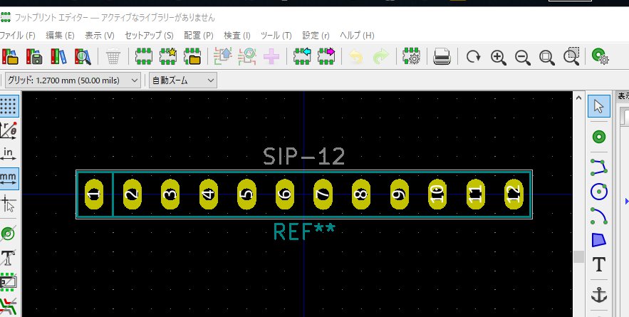 - 今回は2.54mmピッチの12pinシングルインラインパッケージなので、こんな感じにしました。