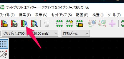 - KiCadを起動し、フットプリントライブラリエディタを起動します。