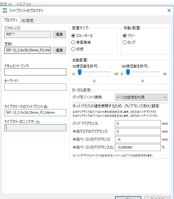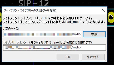 - あとは、フットプリントライブラリの管理でプロジェクト固有のライブラリとして、作成したライブラリを指定すれば、