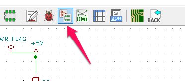 - 次に回路図におかしなところがないかチェックをします。「エレクトリカルルールをチェック」アイコンをクリックします。