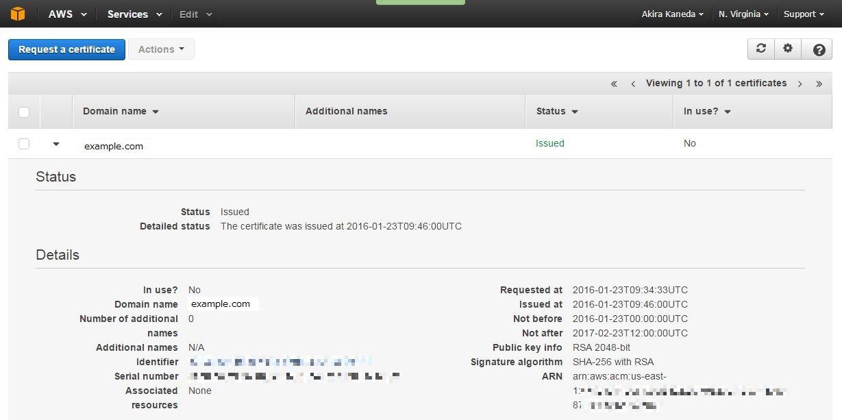 - 画面を確認すると、ステータスが「Issued」になっています。