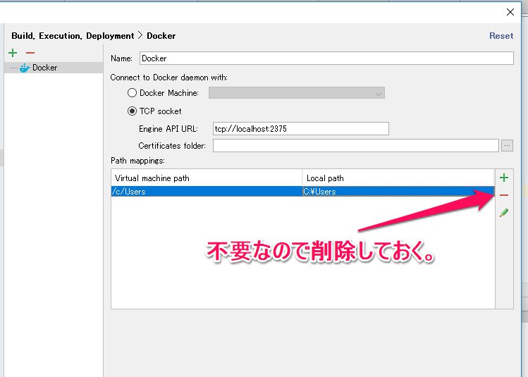 - Dockerの設定が入ります。ここでAPI URLをリモートDockerに設定すれば、リモート上のDockerにて動作させることができます。