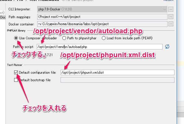 PHPStormでDocker内でPHPUnitを動かす方法です。