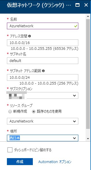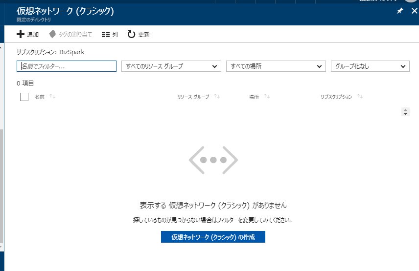 - Azureポータルより、仮想ネットワークを構築します。この時かならず(クラシック)を選択します。