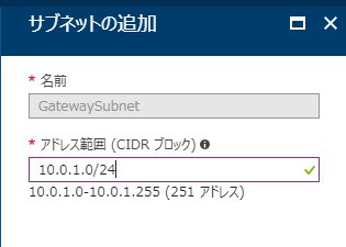- サブネットをクリックし、ゲートウエイ用サブネットを切ります。ここでもデフォルト設定にしました。