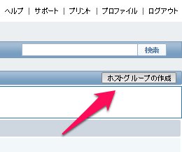 - 右端にある[ホストグループ]の作成ボタンをクリックします。